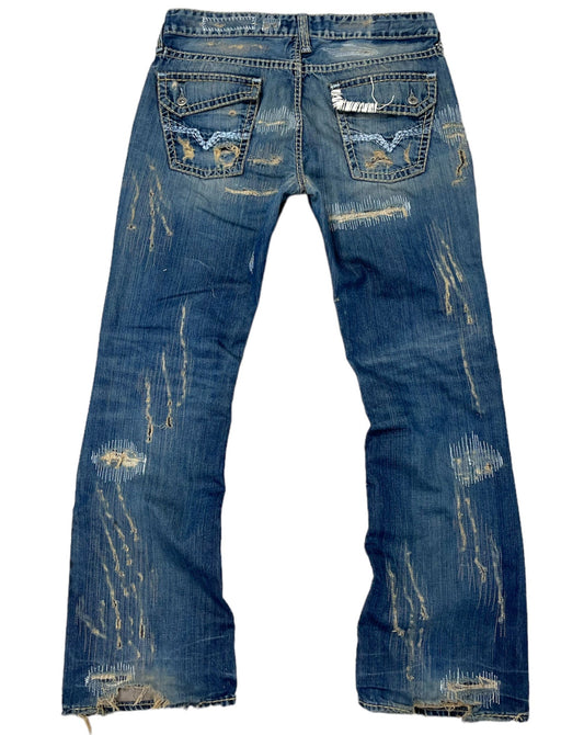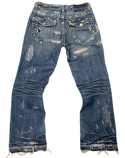 Web Distressed Waist Flares- XS